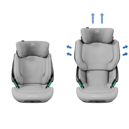 Le siège auto Kore i-Size de Bébé Confort convient aux enfants de 100 cm jusqu’à 150 cm et permet un ajustement simultané en hauteur et en largeur.
